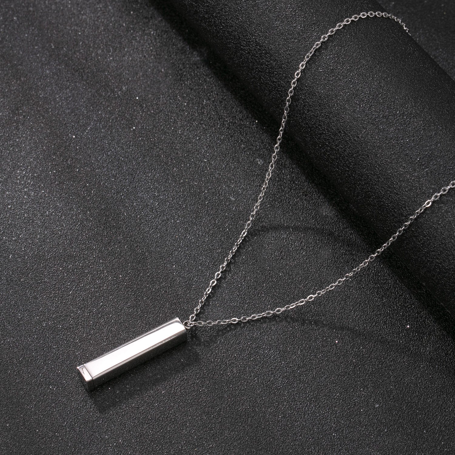 The Column Pendant references modernist architecture with its elongated rectangular form and soft bevelled edges. Cast in 18k gold vermeil, it slides freely along a longline chain for sweater-season layering.